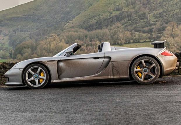 Колата е доставена нова от Германия във Великобритания през 2004-та. Три години живее без проблеми и навърта малко повече от 1100 км, преди някой не късметлия, потенциален клиент, да я отпише по време на тестово каране. Застрахователната компания изплаща злощастната Carrera GT и я продава на някой си Дейвид Хейлс, брокер на супер коли, който малко по-късно през годината, я препродава, недокосната, на сегашния и собственик – бизнесмен и техник от Дорест. Последният я възстановява и я кара яко, както трябва да се кара едно Porsche. В резултат сребристата Carrera GT навърта още около 100 хил. км, преди да бъде качена за продажба от The Octane Collection.