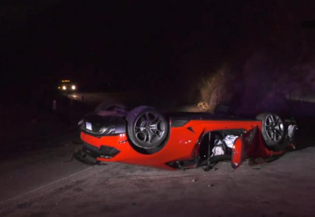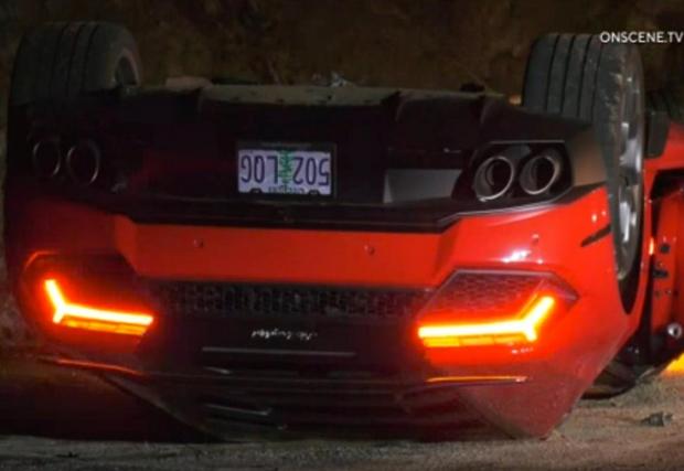 Американските пътни полицаи търсят шофьора на изоставено Lamborghini Huracan, което е открито обърнато на тавана си в сряда сутринта в близост до Лос Анджелис.