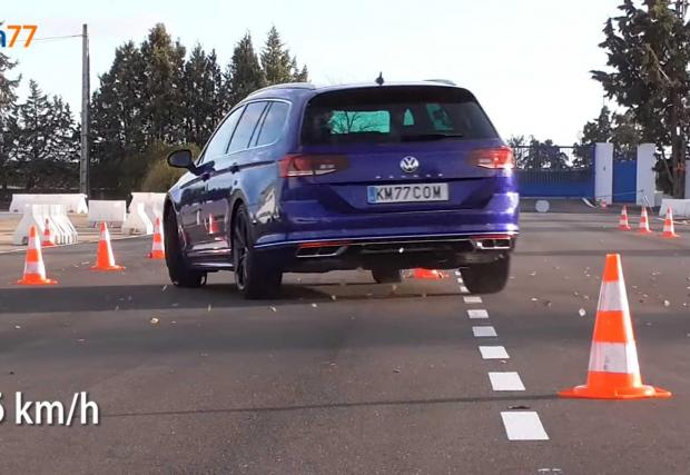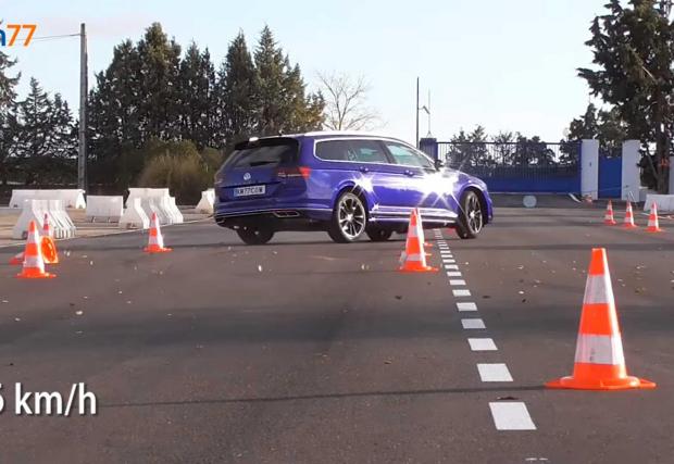 При навлизане в тестовата отсечка със скорост от 77 км/ч, комбито бързо изпуска задницата си и събира половината конуси по трасето. Най-високата скорост за успешно преминаване е 73 км/ч, като дори и тогава Passat Variant не се чувства много спокоен.