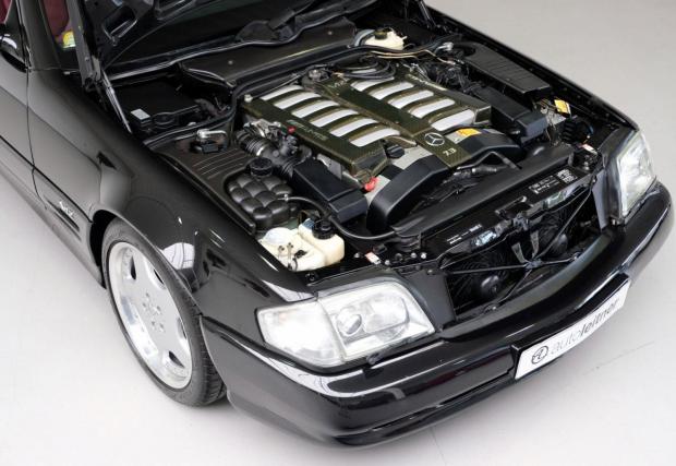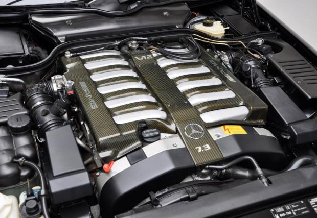 SL 73 AMG се задвижва от масивният V12 M120S. Това е най-големият мотор вграждан някога серийно в SL, а почти сигурно и в кола на Mercedes-Benz. Показателите му са чиста наслада: 7,3-литра, една дузина цилиндри, максимална мощност 525 к.с. и максимален въртящ момент 750 Нм. Седемстотин и петдесет нютона, през 99-та. Динамиката? Ускорение от 0-100 км/ч за 4,6 секунди, 0-200 за 15,3 и максимална скорост, когато се деактивира ограничителя, 302 км/ч. Триста и два в 2-тонен луксозен роудстър, през 99-та. Нищо чудно, че Хорацио Пагани избира този мотор за Zonda.