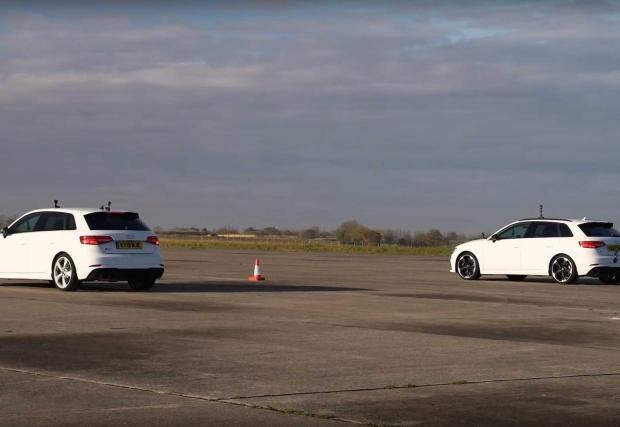 За целта пичовете от Carwow използват Audi RS3 екземпляри от 2017 и 2019 година - с две думи, преди и след GPF да стане задължителен. Изправят ги на драг пистата, за да видят кой е по-бърз.