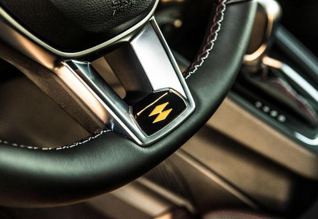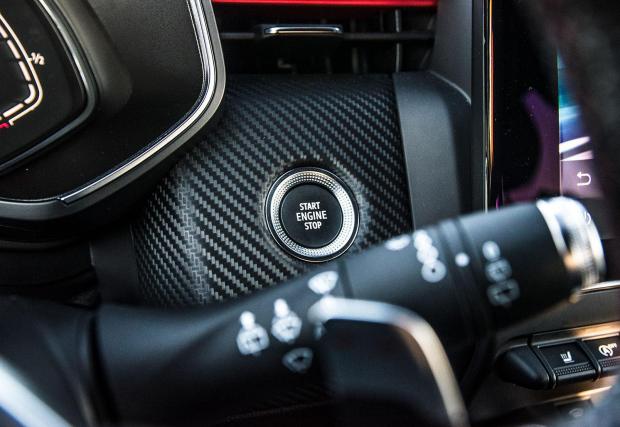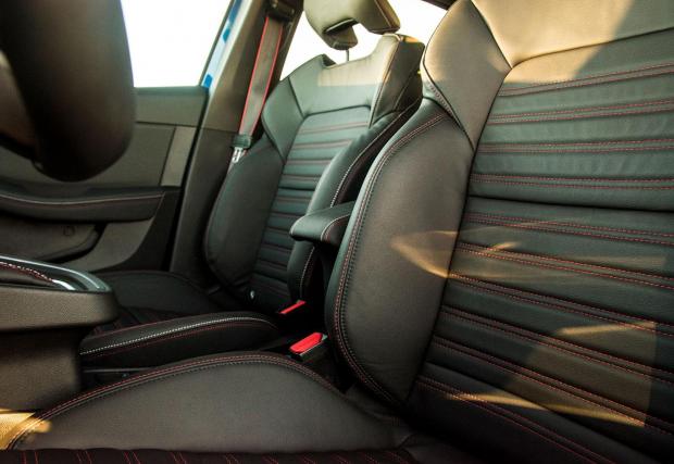 Седалките? Също удобни, със специфична за R.S. Line форма и, в нашия случай, с доплатена кожена тапицерия за 1390 лв. Повечето шевове при тях са червени, в тон с червените линии на предпазните колани и червената линия на таблото, също характерни за по-спортното ниво на оборудване.