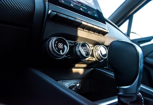 Забележки към кокпита? Основно две: едната е, че ако обичате да седите в най-ниска позиция и/или сте с ръст под средния, има шанс обръчът на волана да закрива долната част на дисплея с контролните уреди. По-малко отколкото в предишното 208, но пак. Другата е, че климатичната инсталация се управлява изцяло от 7/10-инчовия тъч, вместо да има физически контроли, което е по-удобния вариант, както е в Clio.