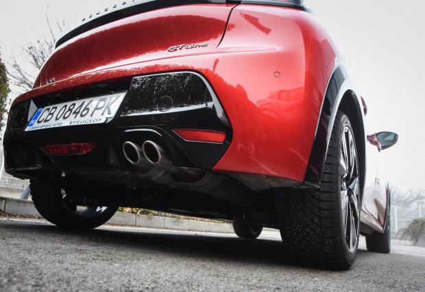 Peugeot разчита на 8-степенен автомат на японците Aisin, версия на който се ползва в много други модели, в това число и на споменатото MINI. Сменя супер, когато го оставите да го прави сам и невинаги бързо, когато ръчкате колата и задавате команди с планките от волана. Ръчната кутия? Така и не успяхме да я тестваме, но много колеги от доказани европейски медии, твърдят че не е особено прецизна. А TopGear казват, че смените са гумени, като „дъвка с вкус на презерватив“...