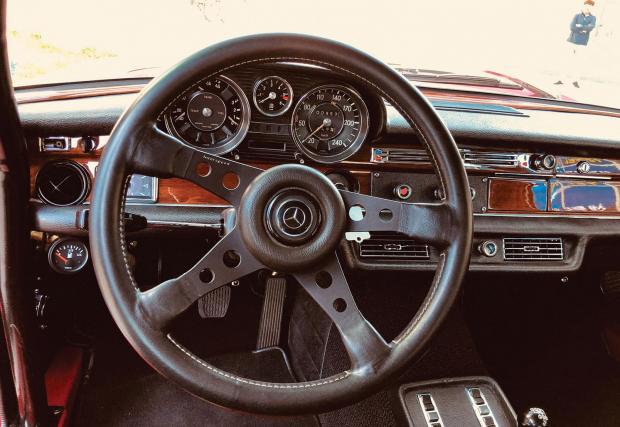 Обратно към „Червеното прасе“ от галерията. То е започнало живота си, като напълно здрав 1969 Mercedes-Benz 300 SEL (оригиналът от „Спа“ е преработен след катастрофа), претворен от ателието Arthur Bechtel Classic Motors, Бьоблинген, Германия. За разлика от оригинала, под предния капак на въпросния Benz работи 6,3-литров M100 V8 с 250 к.с., свързан към 6-степенна механична кутия. Легендата от „Спа“ е разчитала на разпробит до 6,8 литра мотор с около 420 к.с. и 4-степенен автомат, който обаче е бил сменен с 5-степенна механична кутия ZF след състезанието.