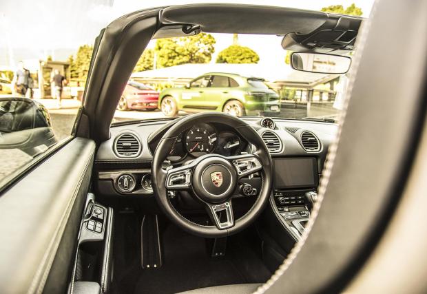 Във видеото караме 718 Boxster GTS с 365 к.с. и 420 Нм, 4,1 секунди 0-100 и максимална скорост 290 км/ч! Окей, не е с 6 цилиндъра, но въпреки това колата е страхотна.