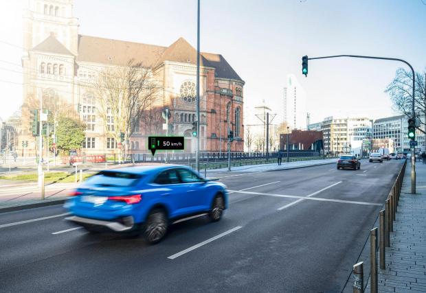 Светофарите в Дюселдорф, Германия, вече си общуват с автомобилите Audi, за да помагат на шофьорите да хващат повече зелени вълни.