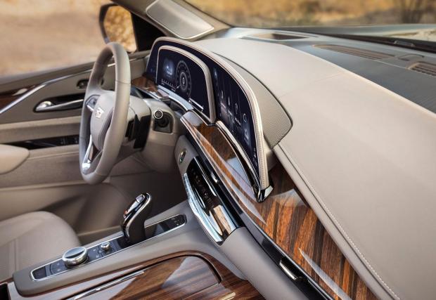 Дисплеите всъщност са общо три, поставени един в друг и извити. Cadillac казват, че за пръв път се използват OLED (Organic Light Emitting Diode) екрани в автомобилното производство. Трябва да признаем, че таблото наистина изглежда внушително.