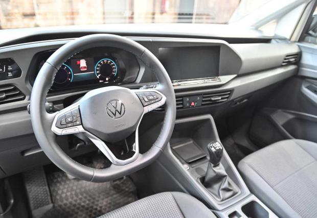 Както знаем, през последните години товарните машини заприличват все повече на автомобилите от другите класове що се отнася до оборудването. Новото Caddy не прави разлика и предлага безключов достъп, LED светлини, навигационна система и други. Всъщност, кабината почти досущ прилича на новия Golf 8 с два големи дисплея.