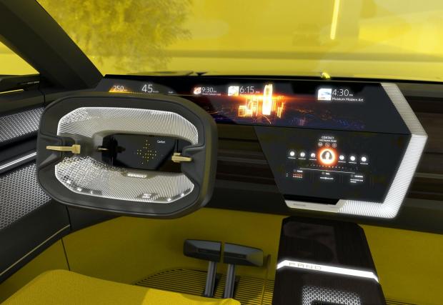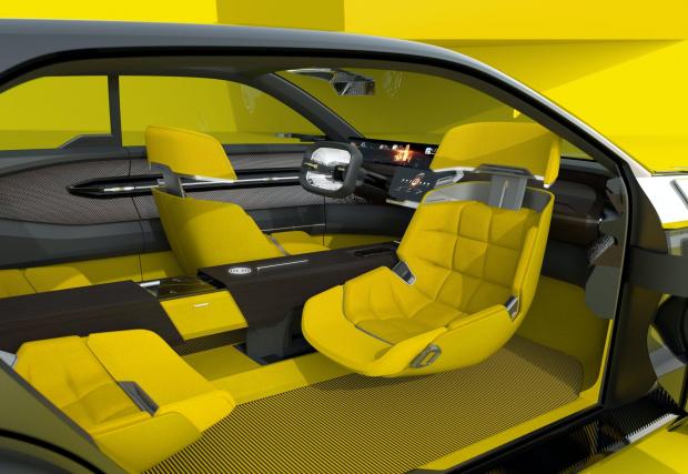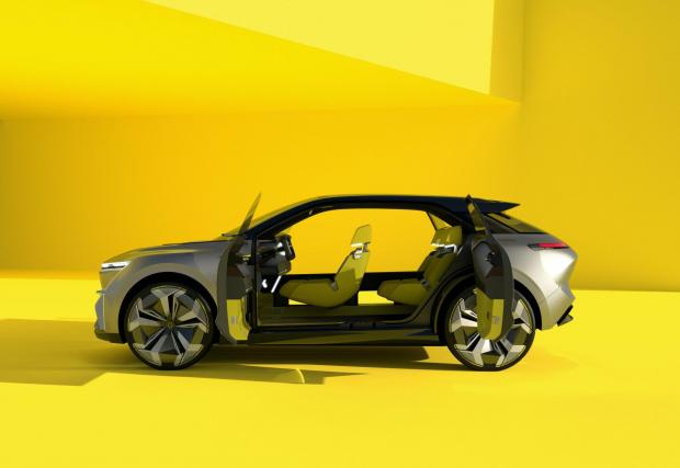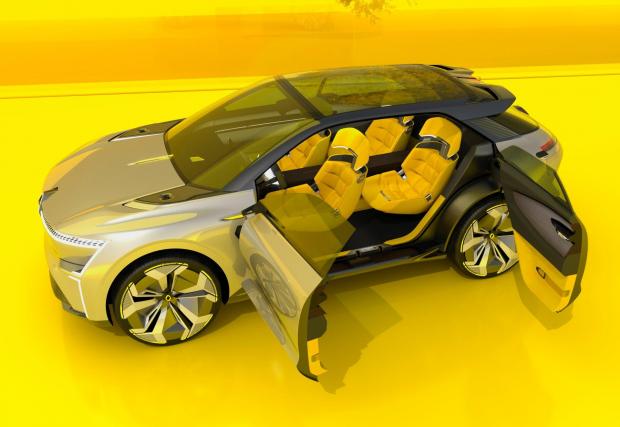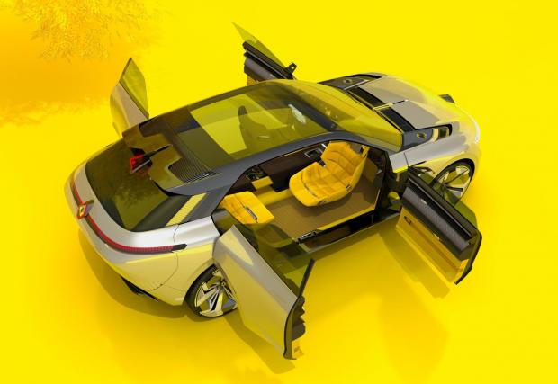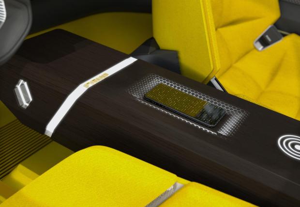 Интериорът на чудатото Renault е не по-малко шантав - с 10,2-инчов дисплей, на който се намира основната информация за пътуването и няколко допълнителни дисплея зад волана. Самият волан е нещо средно между джойстик от космически кораб и произведение на бижутерийното изкуство. Седалките позволяват безброй конфигурации, включително “каре белот”. Както може да очаквате от подобен футуристичен електромобил, той разполага с ниво 3 на автономност и 5G свързаност, както и изкуствен интелект за определени системи.