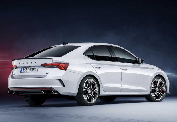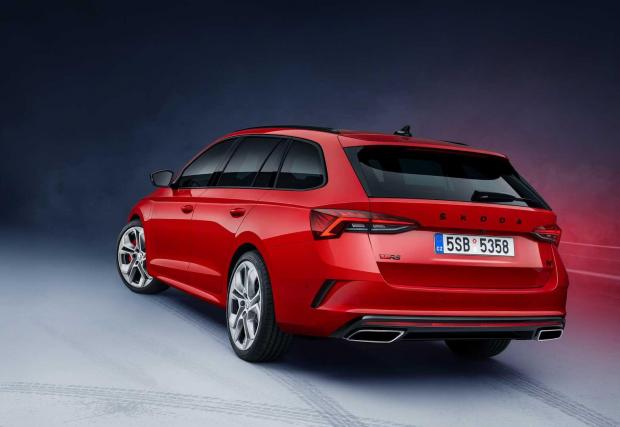 Skoda предлага Octavia RS iV както като хечбек (всъщност лифтбек), така и като комби. Вижте галерията! Лесно ще познаете RS iV на улицата по новите светлини за мъгла, характерните джанти (серийно 18-ки, опционално 19-ки) и по-агресивните брони. Лифтбекът получава и малък спойлер на задния капак, докато комбито има аеродинамичен каскет над капака на багажника. Кабелът за зареждане с ток е на предния ляв калник.