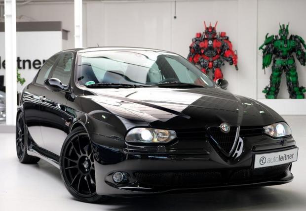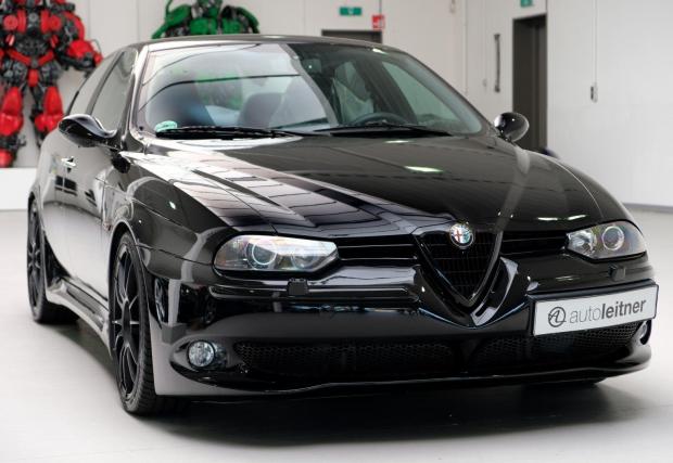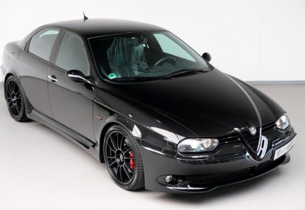 Колата от галерията обаче е произведена през 2002-ра, Alfa Romeo 156 GTA, тунингована от Novitec Rosso. Рядката модификация разполага с 250 к.с. и 300 Нм в заводски вид, способни да я ускорят от 0-100 за около 6,3 секунди и до 250 км/ч. Тази обаче е 280 коня и боядисана в един от най-черните… черни цветове.