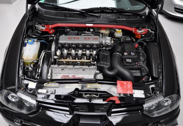 ‘Bussone’, eдин от най-красивите двигатели за последните 20 години. Вижте го как изглежда: 3,2-литров V6, напречно разположен, с 6 прекрасни хромирани тръби, без тъпи пластмасови капаци, с готини червени надписи. Единият от които казва ‘GTA’ – ‘Gran Turismo Alleggerita’, мега съкращението, зад което стояха най-мощните коли на Alfa Romeo. Съкращение, което ни липсваше, докато преди броени дни, италианците не изкараха новата ракета Giullia GTA.