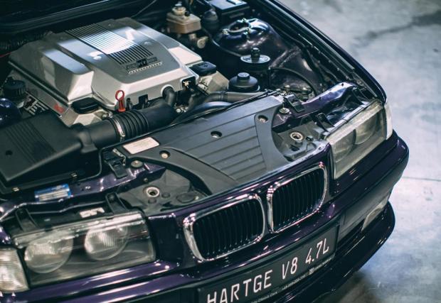 Колата е започнала живота си, като сравнително кротко 1997 BMW 323ti, преди да дойде 1999-та и да попадне в ателието на Hartge. Там немският тунер му инсталира 4,4-литровия M62B44, работещ в 540i и 740i, като преди това обаче му увеличава работния обем до 4,7 литра.