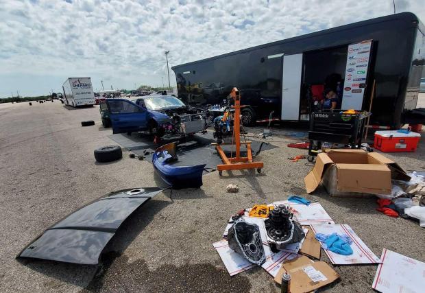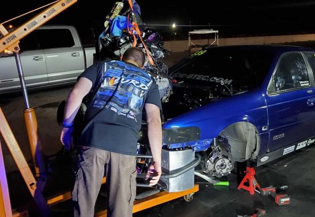 Наричат колата Blue Turd, но тя изобщо не е като костенурка. Няма как и да е друго яче - моторът е изцеден да изкарва около 1100 конски сили на колелата. Колко са на коляновия вал, сами сметнете грубо, но е важно да отбележим, че блокът на двигателя е все още стоковият, както и самият колянов вал.