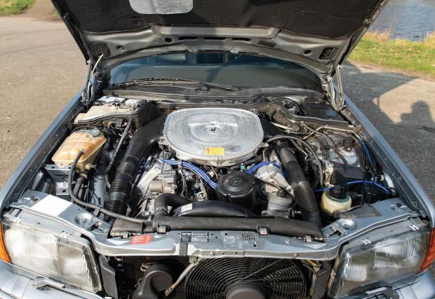 Конкретният W126 също е с V8 мотор, 6-литровия 32V агрегат с 385 коня, вграждан също в оригиналния W124 ‘Hammer’. Не е ясно дали този двигател е заел мястото си по-късно или колата е оригинално излязла с него от ателието на AMG, но за нас няма особено значение.