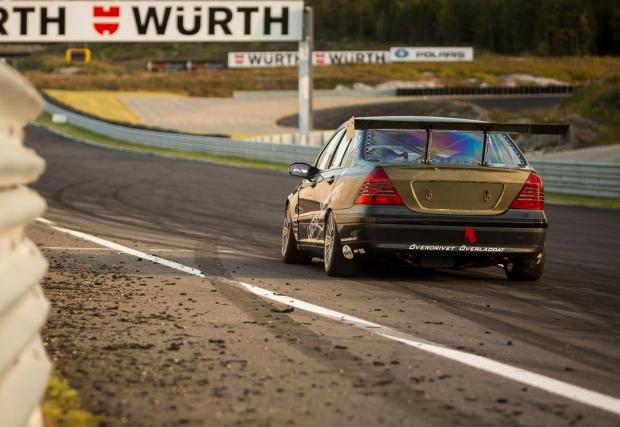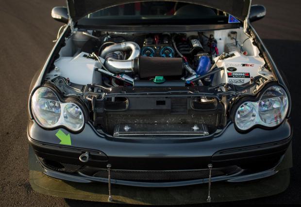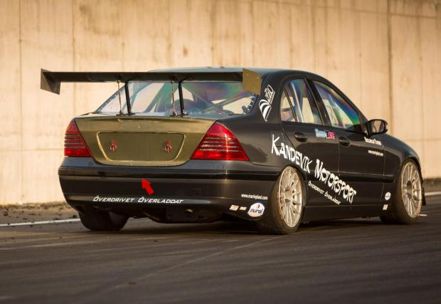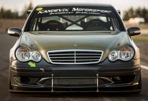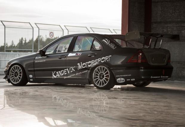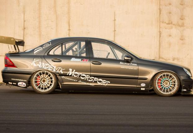 Този Mercedes C-Class е с 2,3-литров Volvo мотор с 525 к.с. Направен е за тайм атак