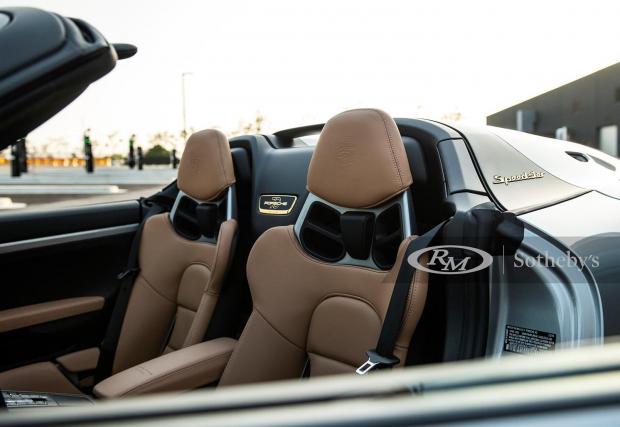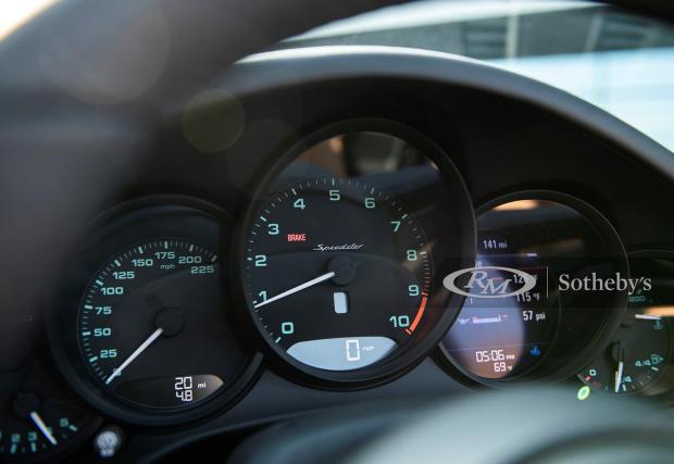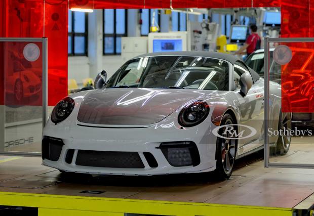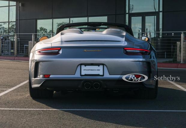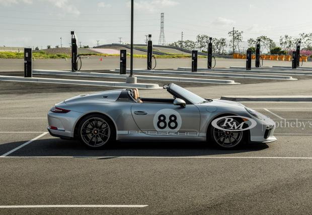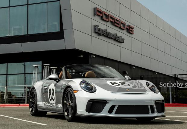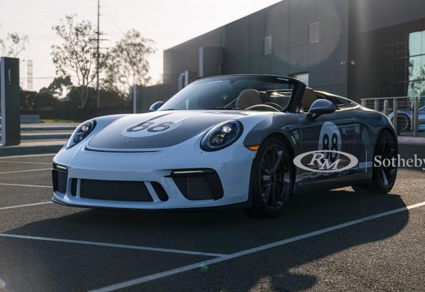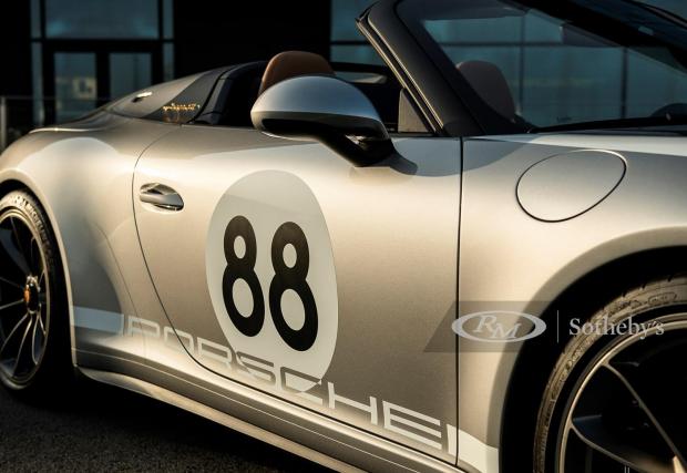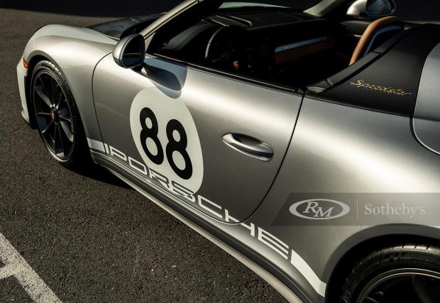 Автомобил и то какъв: последното произведено Porsche 991, което неслучайно е и в много рядката модификация Speedster, в още по-рядкото изпълнение ‘Heritage Design’, слязло от поточната линия в Цуфенхаузен на 20 декември 2019-та. Оттогава колата е изминала едва 30 мили, като върви в комплект с много приятен часовник Porsche Design 911 Speedster Heritage Design.
