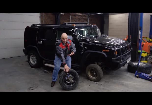 Заглавието казва достатъчно, но все пак ще уточним, че серийно Hummer H2 излизаше с гуми 315/70 R17. Имаше и опция за 18-ки, а често сме виждали голямата „джипка“ и на 20-ки, 22-ки, знаете.