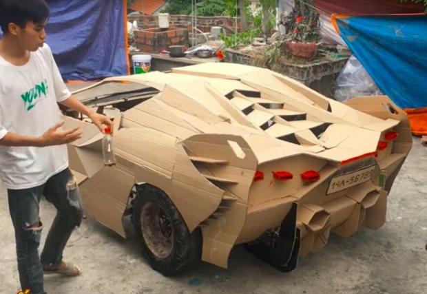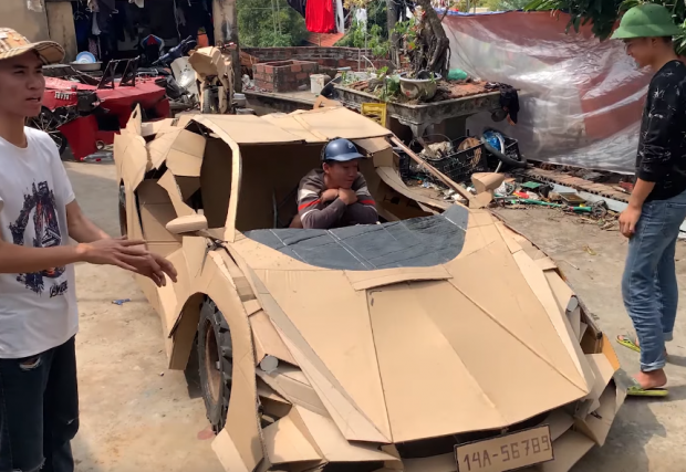 Събрали сме няколко от видеата им в мрежата, които показват тяхната изработка от картон, лепило и понякога замаска на популярни суперколи - Lamborghini Aventador SVJ, Bugatti Chiron, Ferrari FXX K и други.