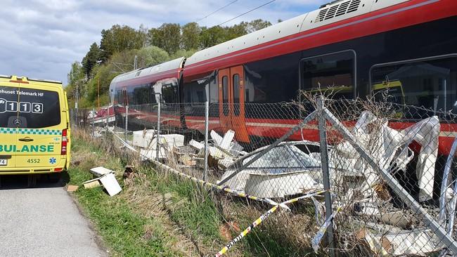 Зрелищна катастрофа, разиграла се този четвъртък (29 април 2020) в Норвегия, е записана от очевидци. Видеото показва как пътнически влак удря и отнася на десетки метри със себе си влекач с ремарке, върху което има лодка. Действието се развива в град Шиен в Южна Норвегия. За щастие шофьорът на камиона и неговият спътник успяват навреме да напуснат кабината и не са засегнати. Във влака, който дерайлира вследствие на инцидента, има седем души - четирима пътници и трима души персонал.