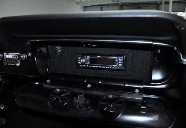 Салонът изглежда перфектен, с кожени „фотьойли“, воланът е дървен Moto-Lita, а в жабката е монтиран CD плейър, за да не се вижда и да не нарушава класическата визия на интериора.