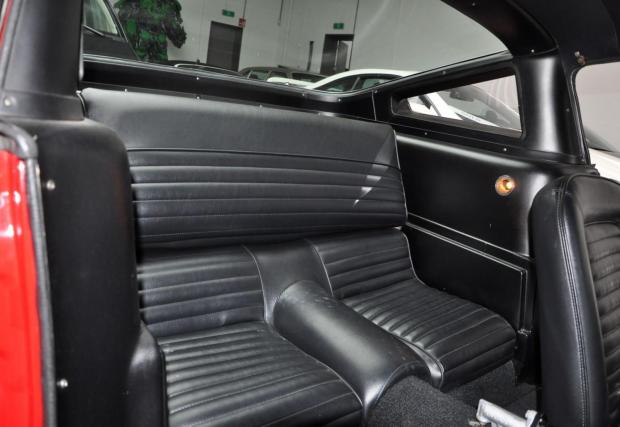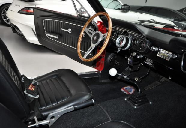 Тук обаче акцентът е върху тази червена машина от средата на 60-те. Моторът и е 4,7-литров V8 с 306 коня, като е претърпяла детайлна реставрация и модифициране преди около пет години. Спирачките са дискови, навсякъде, а скоростната кутия е 5-степенна механична Tremec.