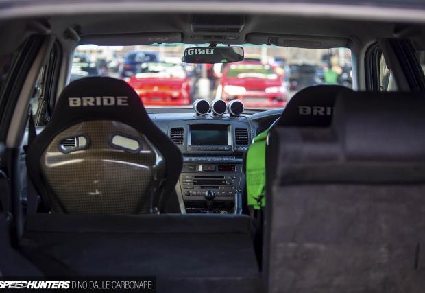 Вътре, обичайните „турбо“ уреди, Nardi волан и карбо-кевларени състезателни седалки Bride. Какво мислите, защо Lexus не правят IS комби, при положение, че немската конкуренция има?