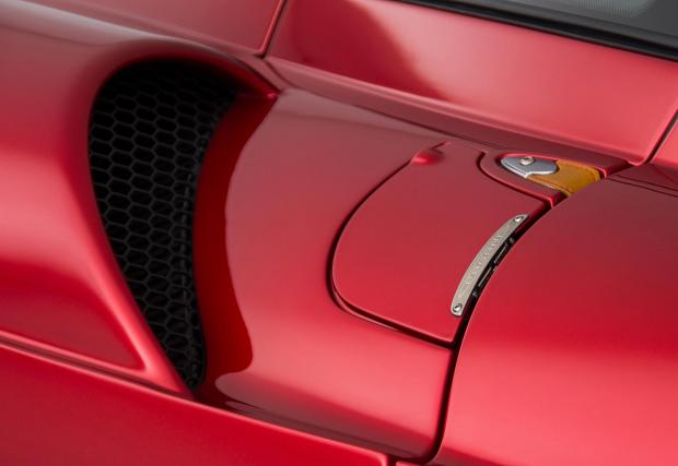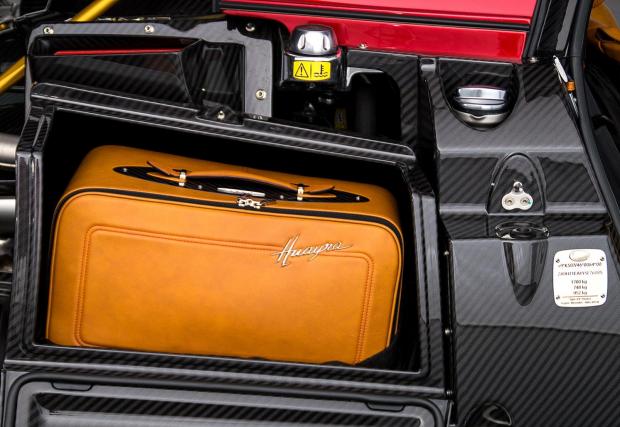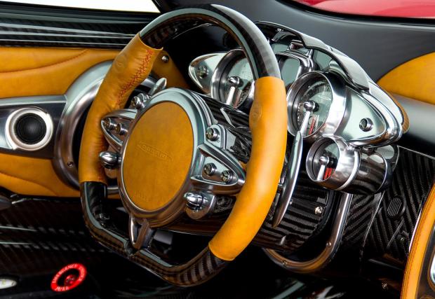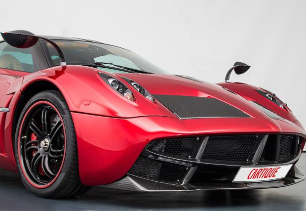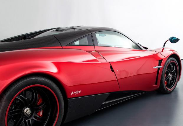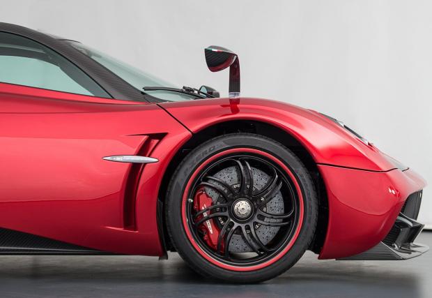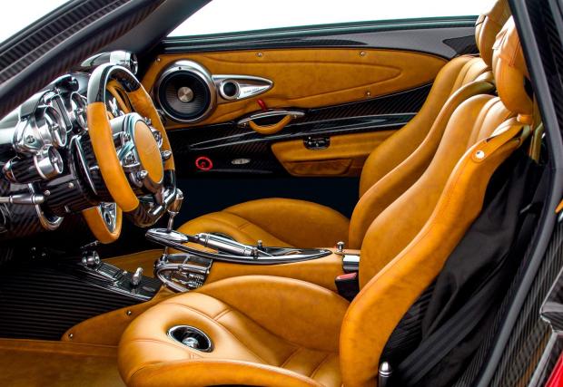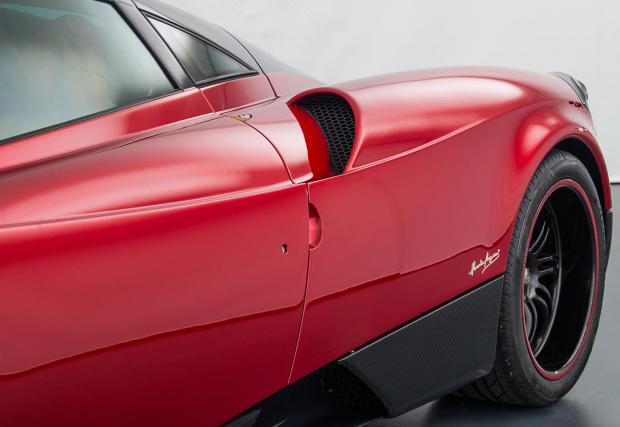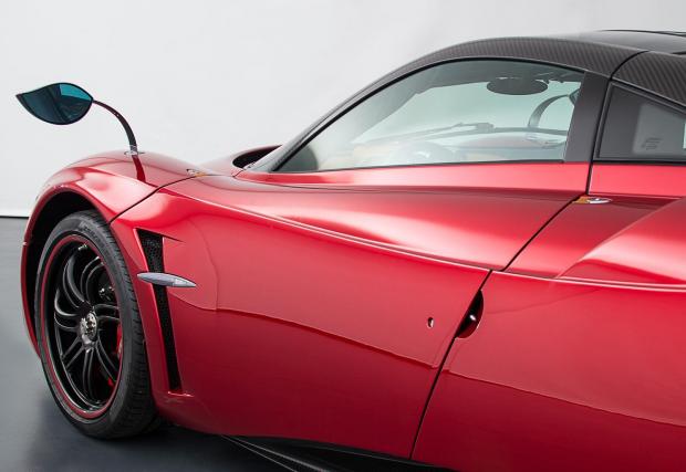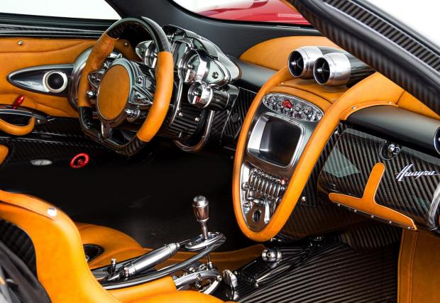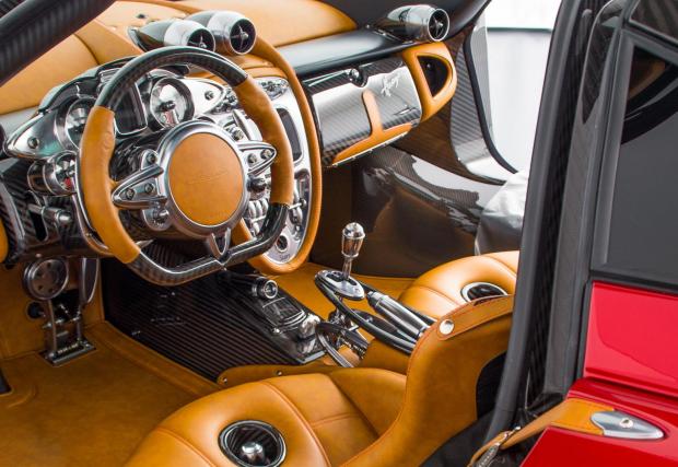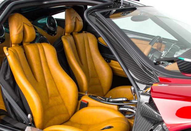 Колата е Huayra произведена през 2015-та, с провокиращ червен цвят, интериор с кафява кожа (прилича по-скоро на бебешко ако; извиняваме се) и скромен пробег от 2350 км. Километраж, натрупан от „карането ѝ по специални поводи“, пише в описанието.