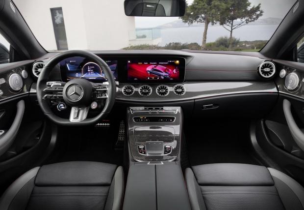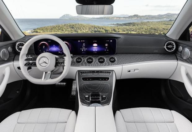 Както и при седана и комбито, новите версии на Е-класата получават най-новата версия на системата MBUX (с два 10,3 или 12,3-инчови екрана, в зависимост от оборудването). Съвсем нов е и воланът - малко по-дебел от натъпкана с пух възглавница и също толкова мек. Вградени в него са два сензора, които познават дали ръцете ви го държат или не, като това позволява на асистиращите системи да преценят дали да ви се доверят или да поемат управлението над колата.