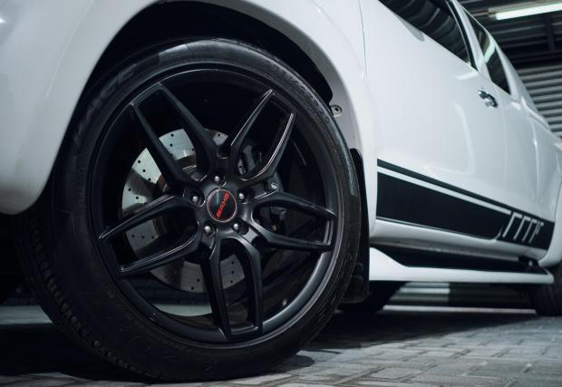 Спирачната система също е подменена с по-адекватна. Използвани са компоненти от VW Golf R Mk6, а джантите са 20-ичови с гуми 275/40 R20. Що се отнася до интериорът, Куентин го е оставил абсолютно сериен.
