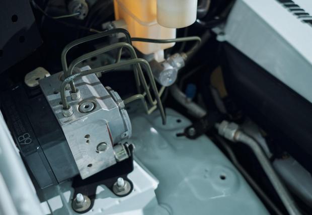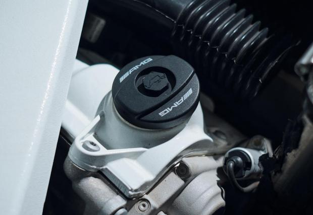 Което сърце попада в коша на белия Hilux. Оригиналите показатели на този двигател при S 63-ката са 525 к.с. при 6800 об/мин и 630 Нм при 5200 об/мин. Тук обаче Куентин слага MoTec M150 ECU, което резултира в 550 к.с. на колелата(!) и 750 Нм още от 1500 об/мин. Супер! Охлаждането? Там няма драми – изработен от нулата радиатор и голяма перка от Land Crusier 120.
