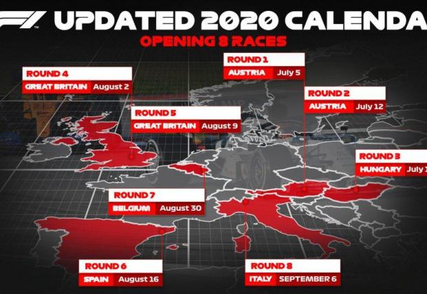 Формула 1 потвърди първите осем състезания за сезона: всичките са в Европа, започват на 5 юли