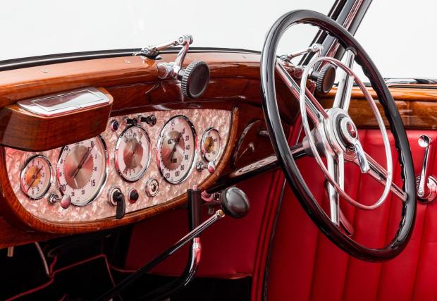 Прекрасен. 1937 Mercedes-Benz 540K Convertible B, реставриран, на едва 58 700 км, които са нищо за неговото 83-годишно съществуване. Моделът е с кодово означение W29 е по-мощен наследник на 500K, представен на изложението в Париж през 1936-та. Предлагал се е в различни изпълнения на каросерията, като това Convertible B е било най-популярното.