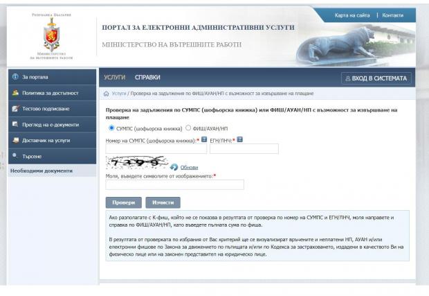„Както и досега при наличие на връчени и влезли в сила наказателни документи, по които се дължи глоба, се извежда списък с неплатени задължения и е осигурена възможност за заплащане на дължимите суми директно през Портала за административни услуги на МВР. Другите възможности за заплащане задълженията са чрез терминално устройство в структура на МВР, банков превод, пощенски запис, интернет банкиране, каси за парични преводи и чрез КЕШ-терминали.
