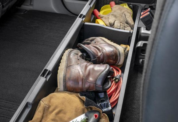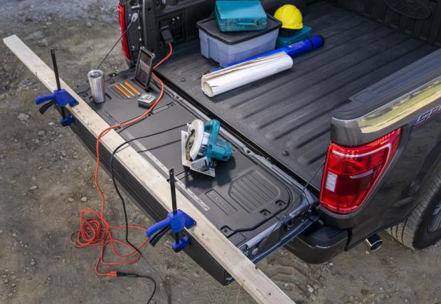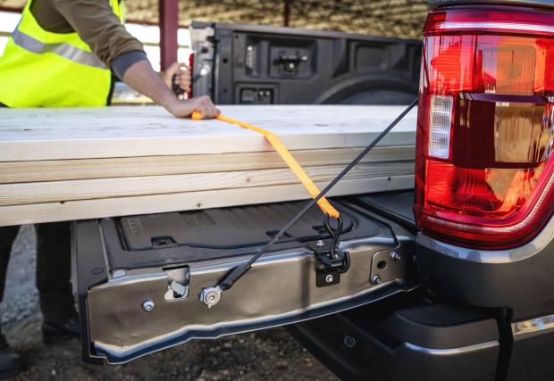 В товарното пространство също не липсват добри идеи. Има изход за захранване на всякакви електрически машини, като например флекс, дърворезачка, зеге и какво ли още не. Товарното легло е богато осветено, а допълнителна камера ще ви помага да надзиравате постоянно товара си по време на път.