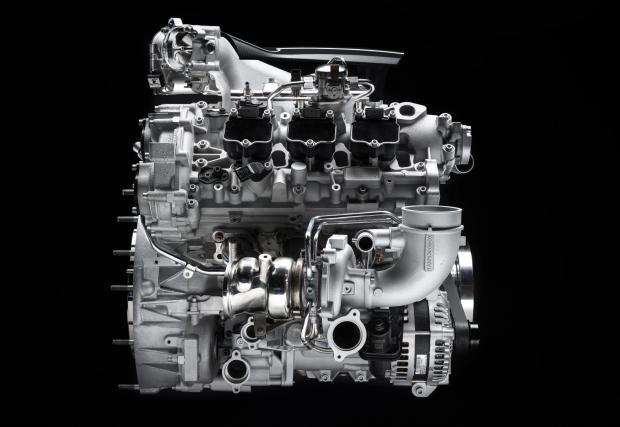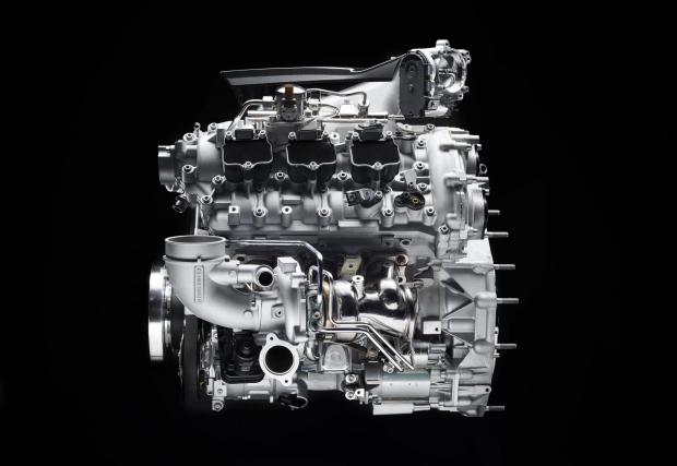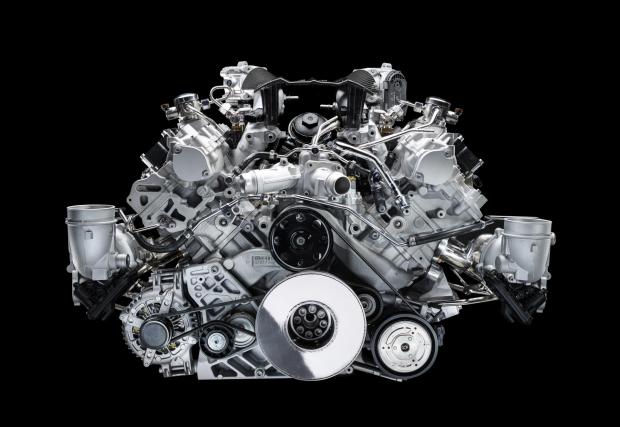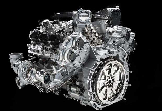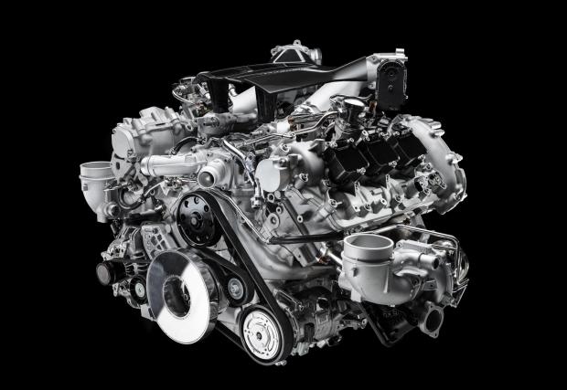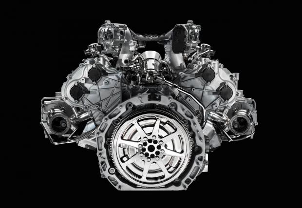 Новият силов агрегат е с V90° архитектура, с 3-литров 6-цилиндров twin-turbo и разполага със сух картер (класическо решение за супер спортни коли). Той осигурява 621 к.с. при 7500 об/мин и 730 Нм въртящ момент от 3000 об/мин със специфична мощност от 210 к.с. / литър. Степента на сгъстяване е 11:1, ходът е 82 мм, а отворът 88 мм.