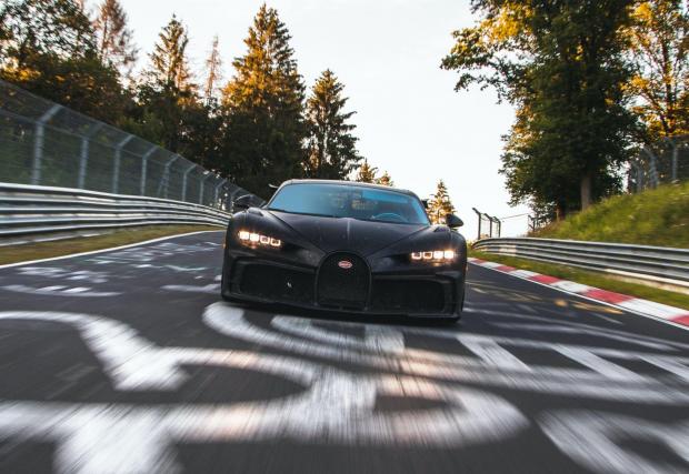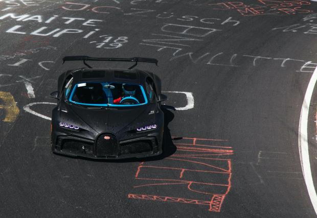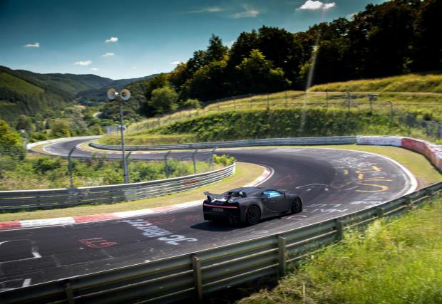 Инженерите на Bugatti разказват, че са искали да осигурят на колата максимално радикално поведение и пистата в планината Айфел е идеалното място за брутален тест - както заради уникалното съчетание между бавни завои и бързи прави, така и заради сериозните неравности, далече от идеалната повърхност на някои по-нови писти. Все пак Chiron на първо място е комфортно GT, а едва след това - пистова хиперкола, поне във версията Pur Sport