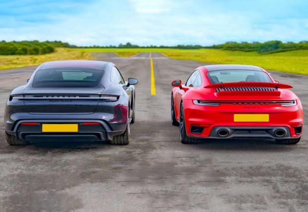 Porsche Taycan Turbo S срещу Porsche 911 Turbo S. Видео!
