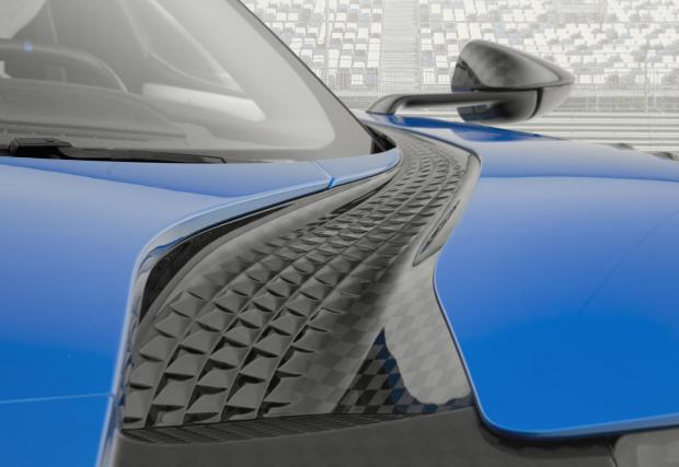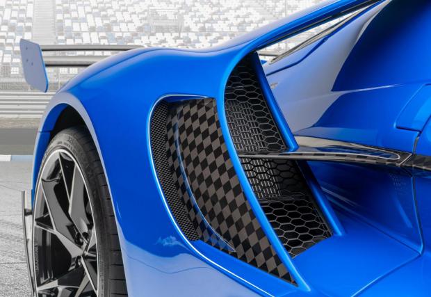 Отпред колата е доста променена, с новоразработени фарове, а цветът е ‘Bleurion Race’. На места се вижда гол карбон, цялото купе е изработено от такъв, а джантите са 21 инчови, обути в Continental Sport Contact 6. Отзад колата също е брутализирана, а 3,5-литровият битурбо ‘EcoBoost’ V6 е подсилен. Мощен е 710 к.с. и генерира 840 Нм.