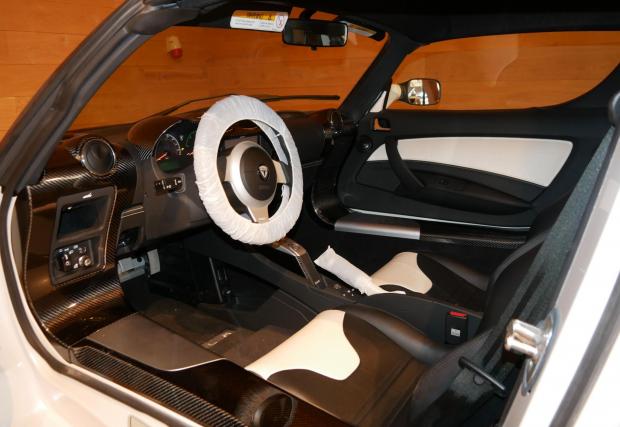 Конкретният екземпляр е произведен с няколко особени детайла - например карбоновия заден дифузьор и няколко други дреболии по каросерията. Отличителен е и интериорът, също с доста детайли от въглеродни влакна. Воланът и ръчната спирачка още са с оригиналните си защитни калъфи, се вижда от не особено качествените снимки.