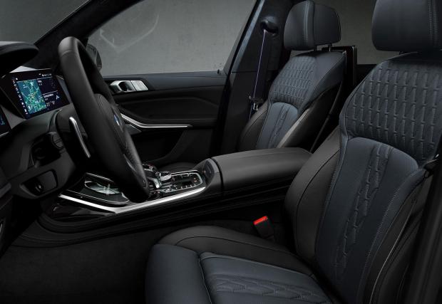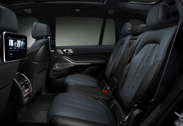 По-специалното на тази „мрачно готина“ X7-мица е боята ‘Frozen Arctic Grey’, която от BMW казват, че се предлага само и единствено за това издание. Тъмнотата е завършена с т.н. ‘BMW Individual High Gloss Shadow Linе’ (специално име) елементите в черен гланц, заместващи обичайните хромирани работи. Такива са например рамките около страничните стъкла, като рейките на покрива също са зачернени и кръстени ‘Roof Rail High Gloss Shadow Line’. Големите бъбреци и ауспуховите накрайници пък са боядисани в… черно. Също големите 22-инчови джанти са уникални за ‘Shadow Edition’ и са в ‘Jet Black’.