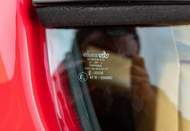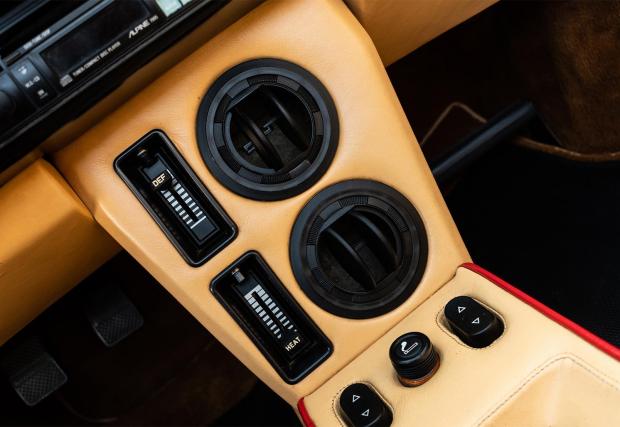 Якото червено се казва ‘Siviglia Red’, а страхотните 15-инчови телефонни шайби- Tecnomagnesio (ако сте родени след 2000-та, питайте родителите си за шайбите). Салонът е много запазен, с кожа цвят… „шампанско“ с червени цилиндрични кантове, стереото е Alpina, а скоростният лост се движи в метален „лабитинт“ – о, да!