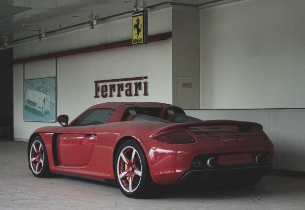 Заедно с прекрасно сиво Ferrari 575 Superamerica и жълт Chevrolet Corvette Z06 (C5). Porsche Carrera GT в цвят ‘Zanzibar Red’ металик, в който са боядисани само три броя от общо 1270-те произведени от модела. Конкретната кола е 1255-та, тоест – освен супер рядка, като цвят -, тази Carrera GT е и една от последните направени.