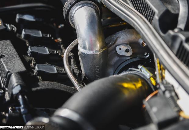 Мико съживил нафтовия агрегат и му вързал BorgWarner VNT турбина от… комбайн John Deere. В резултат на тази и още малко доработки, машинката успяла да измъчи малко над 300 к.с. С последващи усилия и фини настройки мощността достигнала до 469 коня, регистрирани на диното. Но, както пише авторът в оригиналната публикация в Speedhunters.com, двигателният блок не одобрявал промените по неговата периферия.
