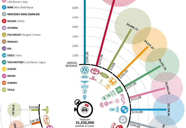 Графика на седмицата: Колко печели всеки автомобилен производител за секунда