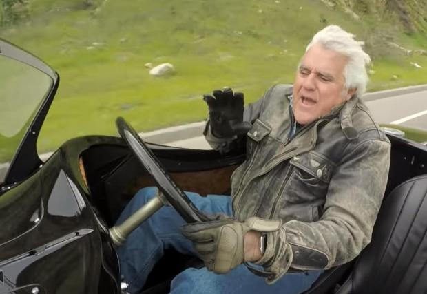 Друго заради което харесваме Джей Лено? Отношението му към автомобилите и мнението му, че те трябва да се карат. „Не харесвам идеята да караш колата си на ремарке до изложението. Това е кола, трябва да може да стигне дотам на собствен ход“. Обърнете внимание и на регистрационната табела, „случайна“ WWII V12.