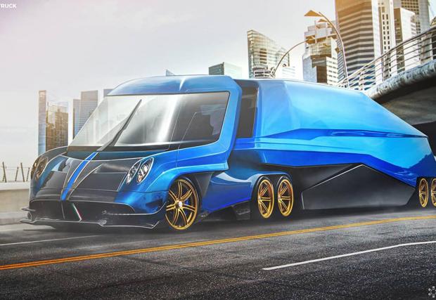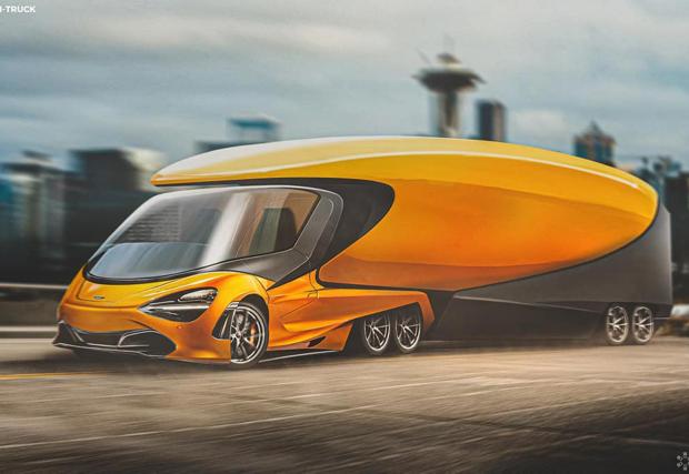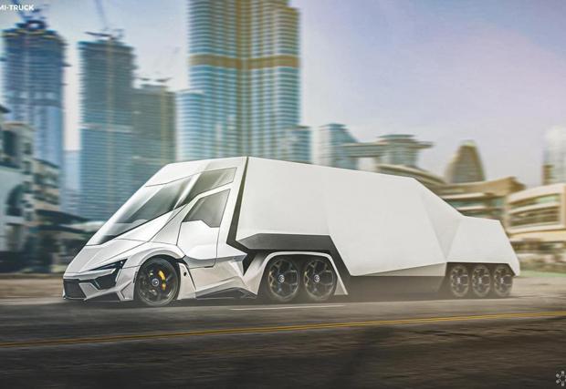 Галерията над текста показва рендъри на влекачи с полуремаркета с отличителните дизайнерски елементи на Aston Martin, Ferrari, Koenigsegg, Lamborghini, McLaren, Pagani и W Motors.