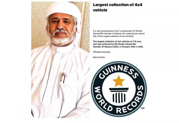 Дали Шейх Хамад обича автомобилите с двойно задвижване? Допускаме, че им симпатизира, защото тази година колекционерът влезе в регистрите на „Гинес“ за най-голяма селекция от 4x4 коли – точно 718 екземпляра. Супер.