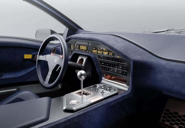 Пластмасата (да, в интериора на оригиналното Diablo има пластмаса) се заменя с кожа, метал или какъвто материал ви хрумне. Кормилната колона става карбонова, а кръглите циферблати са заменени от дигитални, които изглеждат доста ретро, но според нас не стоят никак добре на красивото Lambo. По-добре да бяха запазили кръглите аналогови от оригинала!